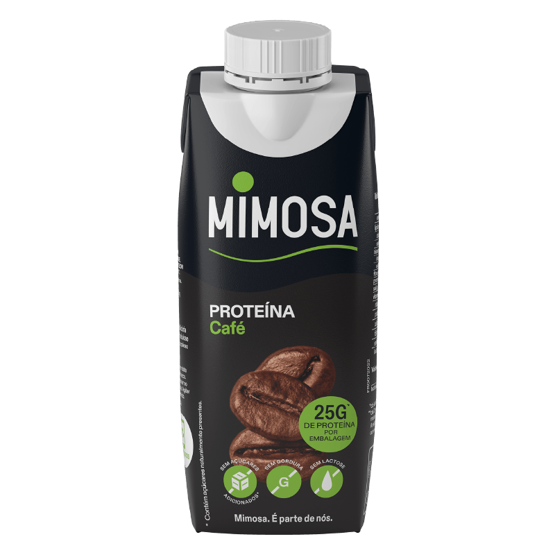 O Leite Proteína Mimosa contém 100 gramas de proteína por embalagem (1 litro), três vezes mais do que a quantidade encontrada no leite de vaca normal. Podes optar também pelos sabores de Café, Cacau ou Morango, com 25 gramas de proteína por embalagem (250ml), num formato conveniente para levares contigo!